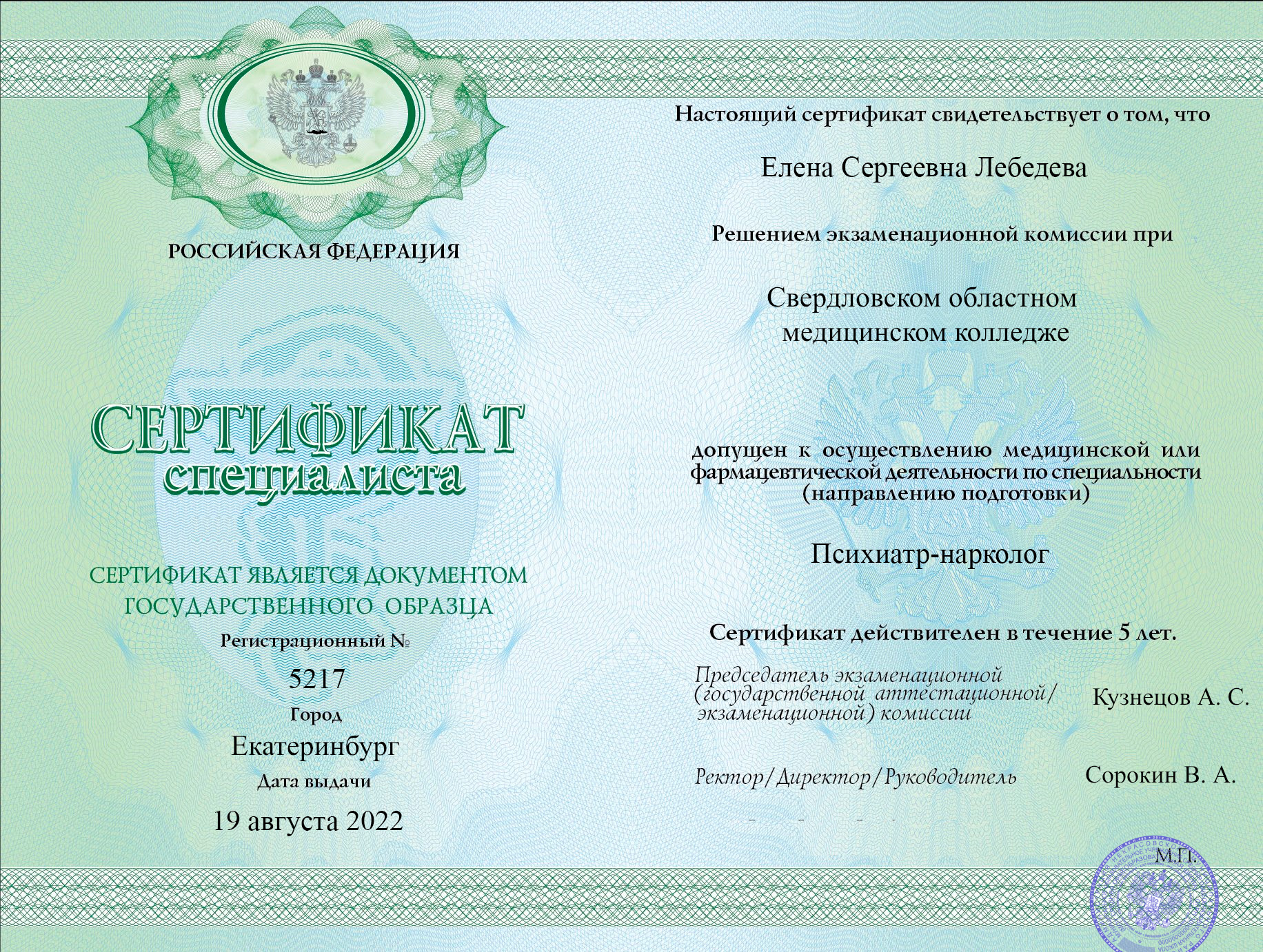 Елена Сергеевна Лебедева врач нарколог клиники доктора Стукаловой в Гремячинске